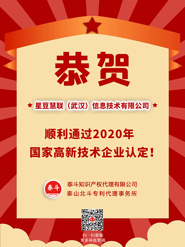 恭賀星豆慧聯(武漢)信息技術有限公司順利通過2020年國家高新技術企業認定!